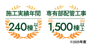 マンション全体の資産価値を守るためには、専有部の対策においても住民の方々との足並みを揃えることが不可欠です。アイギ設備は、これまで240棟以上、専有部分の配管工事において1,500件を超える確かな実績を積み上げてきました。